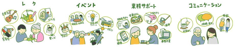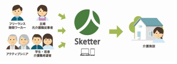 配膳、清掃、レクリエーションなどのお手伝いを求める介護事業所等と、介護の資格を持たない有償ボランティアとをオンライン上でマッチングするサービスです。