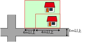 (1)開発敷地の接する道路の幅員は、基準を満たす交差点まで6メートル以上(自己の居住の用に供する開発行為は4メートル以上)確保されていること。