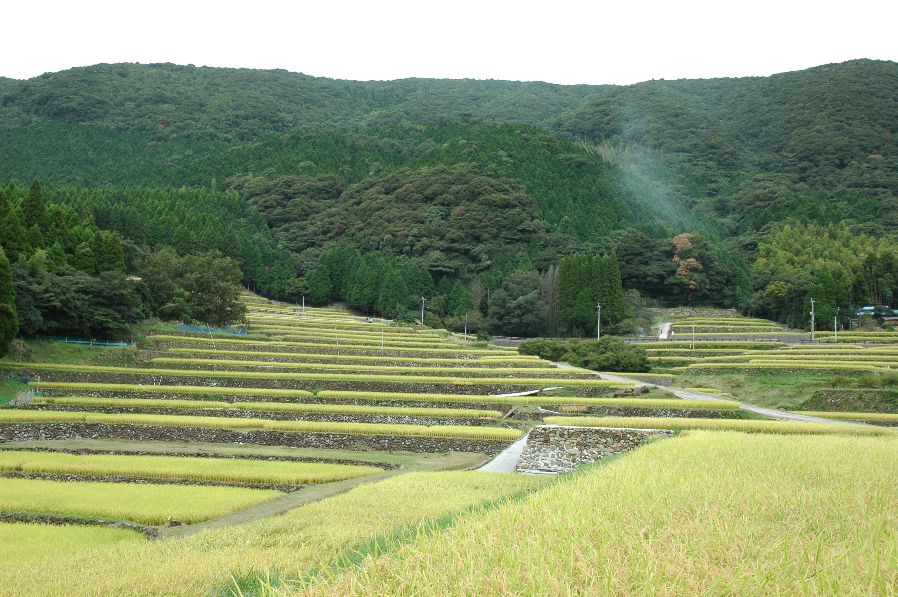 八重山の山腹の急傾斜地に広がる、広さ12.4ha、約240枚からなる石積みの棚田である。遠くには桜島や錦江湾を望める素晴らしい景観である。