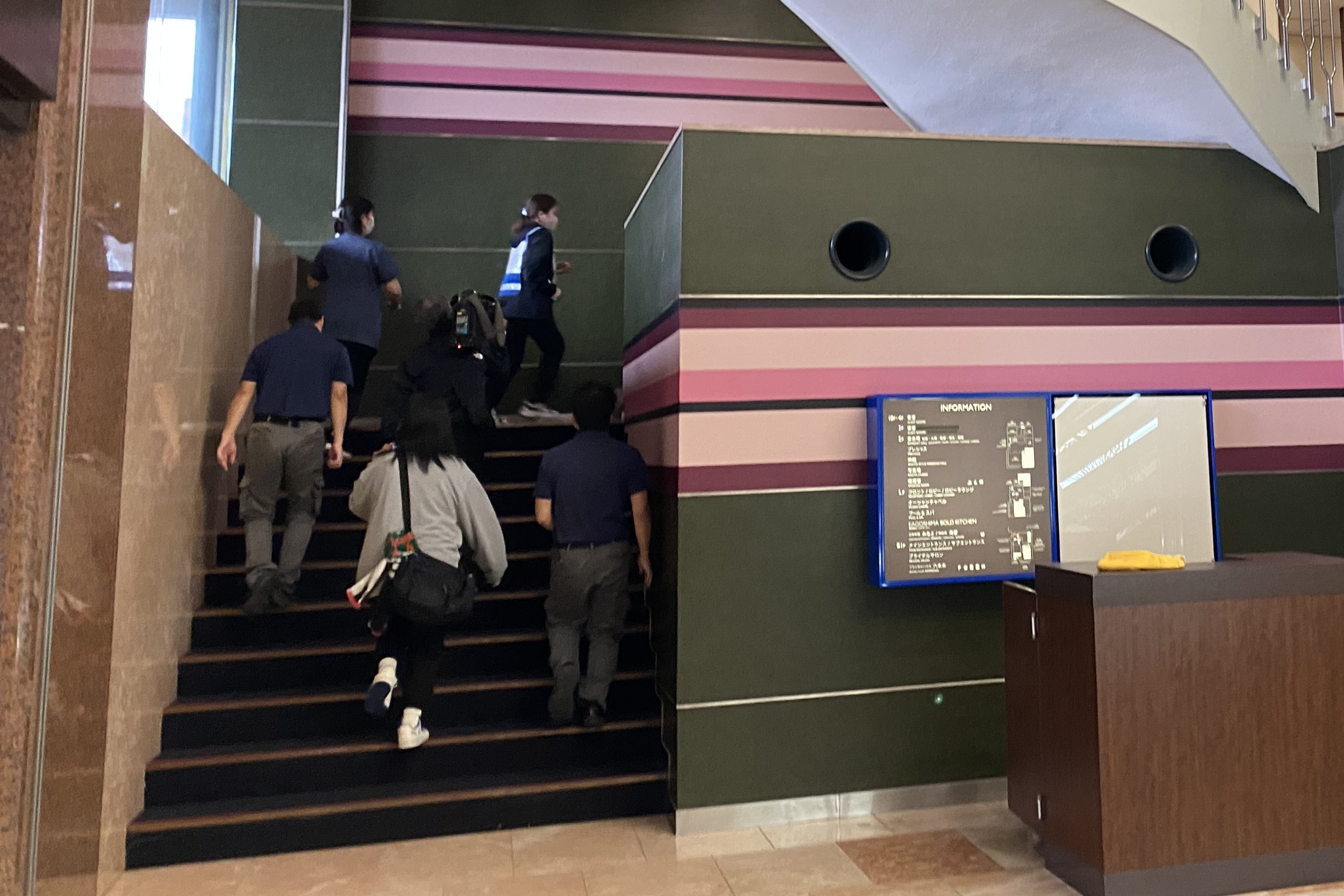 アートホテル鹿児島及び周辺事業所のスタッフが、市民(想定)をアートホテル鹿児島の2階宴会場へ避難誘導を行う訓練を実施