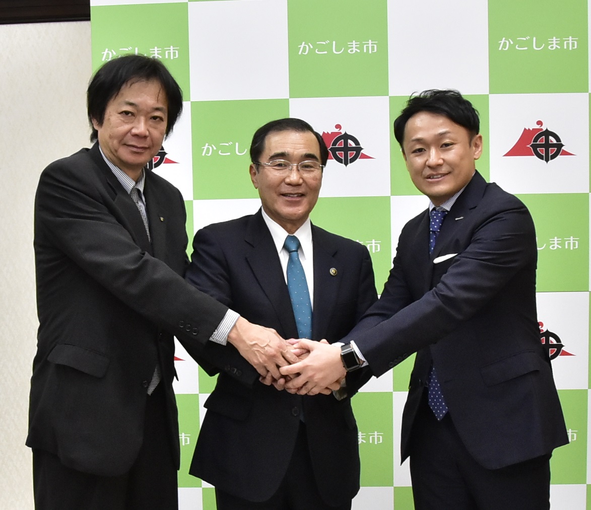 (写真)左から順に:永田県商工労働水産部次長、森市長、GMOペパボ株式会社 佐藤代表取締役社長)