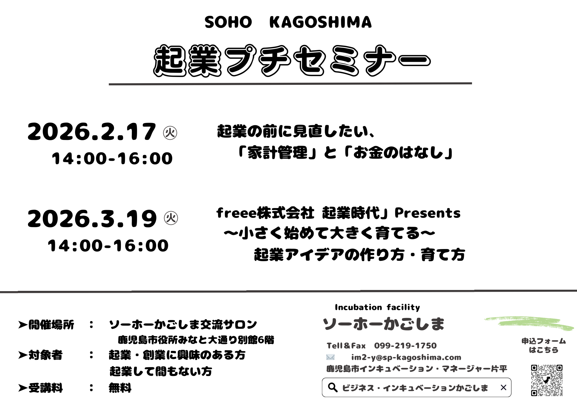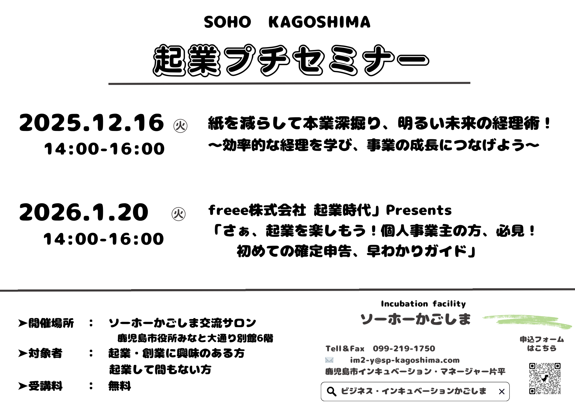 内容:起業に関する基礎知識、開業資金、融資制度の案内、質疑応答等