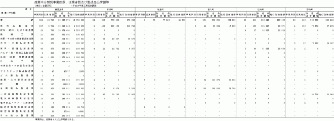 平14工業:産業中分類別事業所数、従業者数及び製造品出荷額等 |